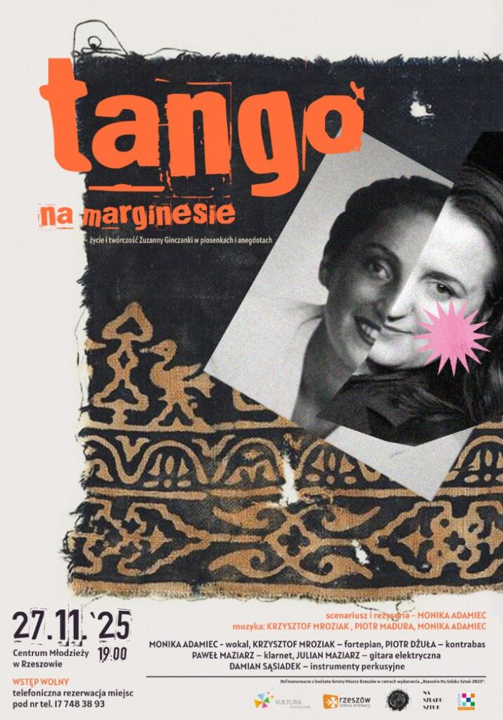 Spektakl muzyczny pt. TANGO NA MARGINESIE – życie i twórczość Zuzanny Ginczanki w piosenkach i anegdotach, to opowieść muzyczna o jednej z najwybitniejszych poetek okresu 20-lecia międzywojennego w Polsce. Jej zachwycająca poezja wraz z jej śmiercią w 1944 roku “zaginęła” w powojennej historii literatury i przez dziesięciolecia, nie była znana szerszej publiczności.
