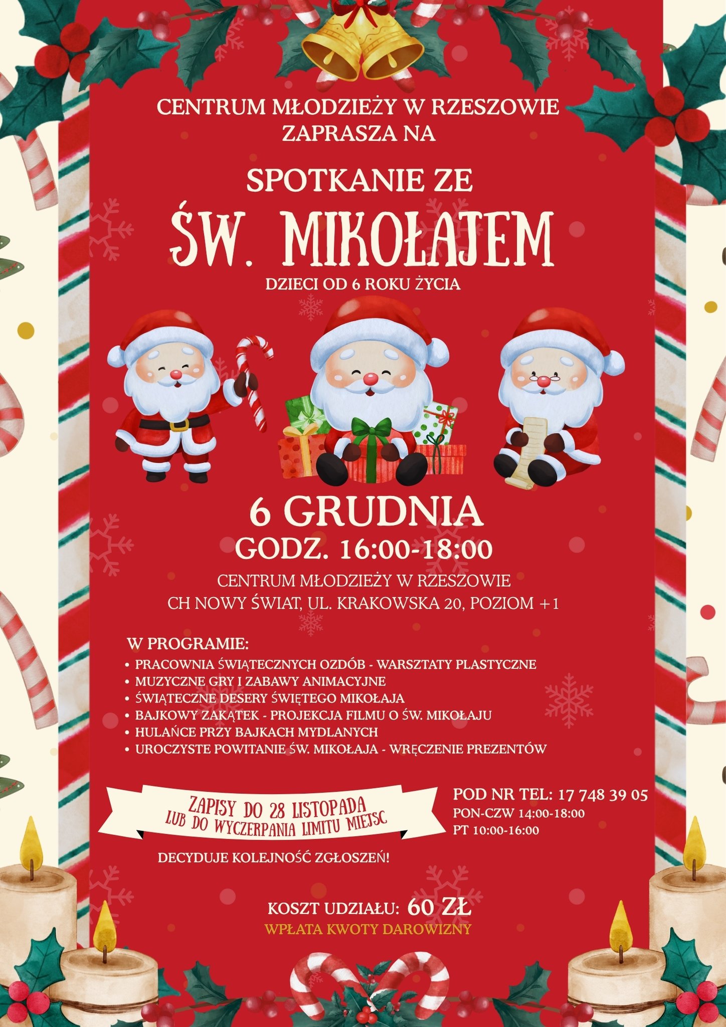 Jak co roku Centrum Młodzieży w Rzeszowie odwiedzi siwobrody pan, ubrany w czerwony długi płaszcz obszyty białym kożuchem, z pełną torbą prezentów dla grzecznych dzieci! Czy już wiecie o kogo chodzi?