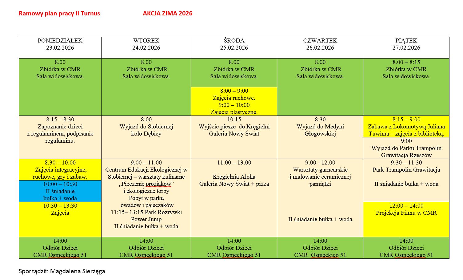 2 tydzień - ramowy plan pracy półkolonia zimowa 2026