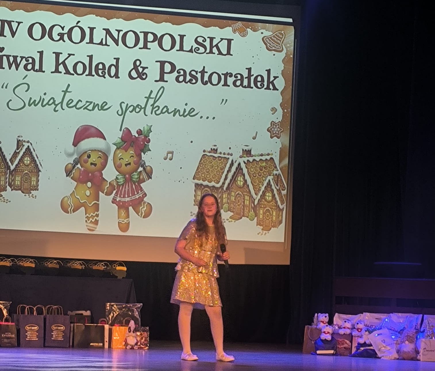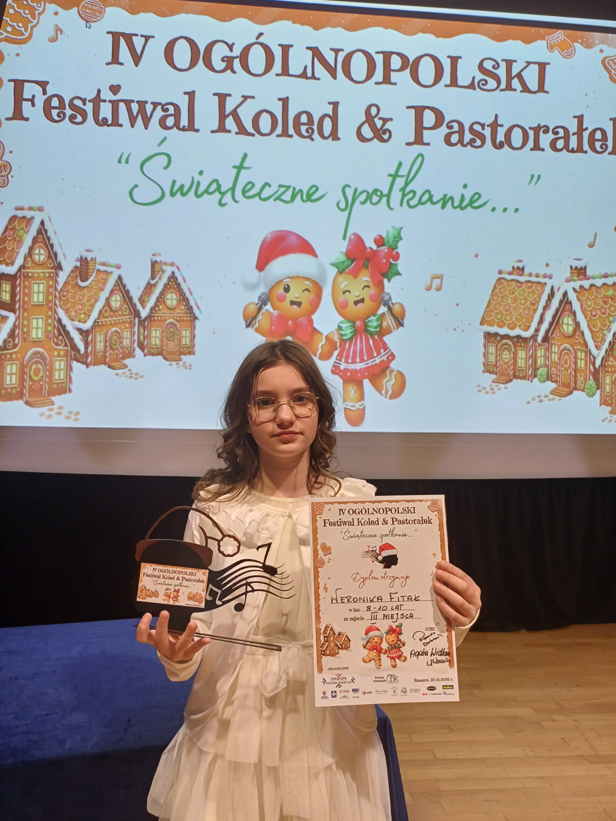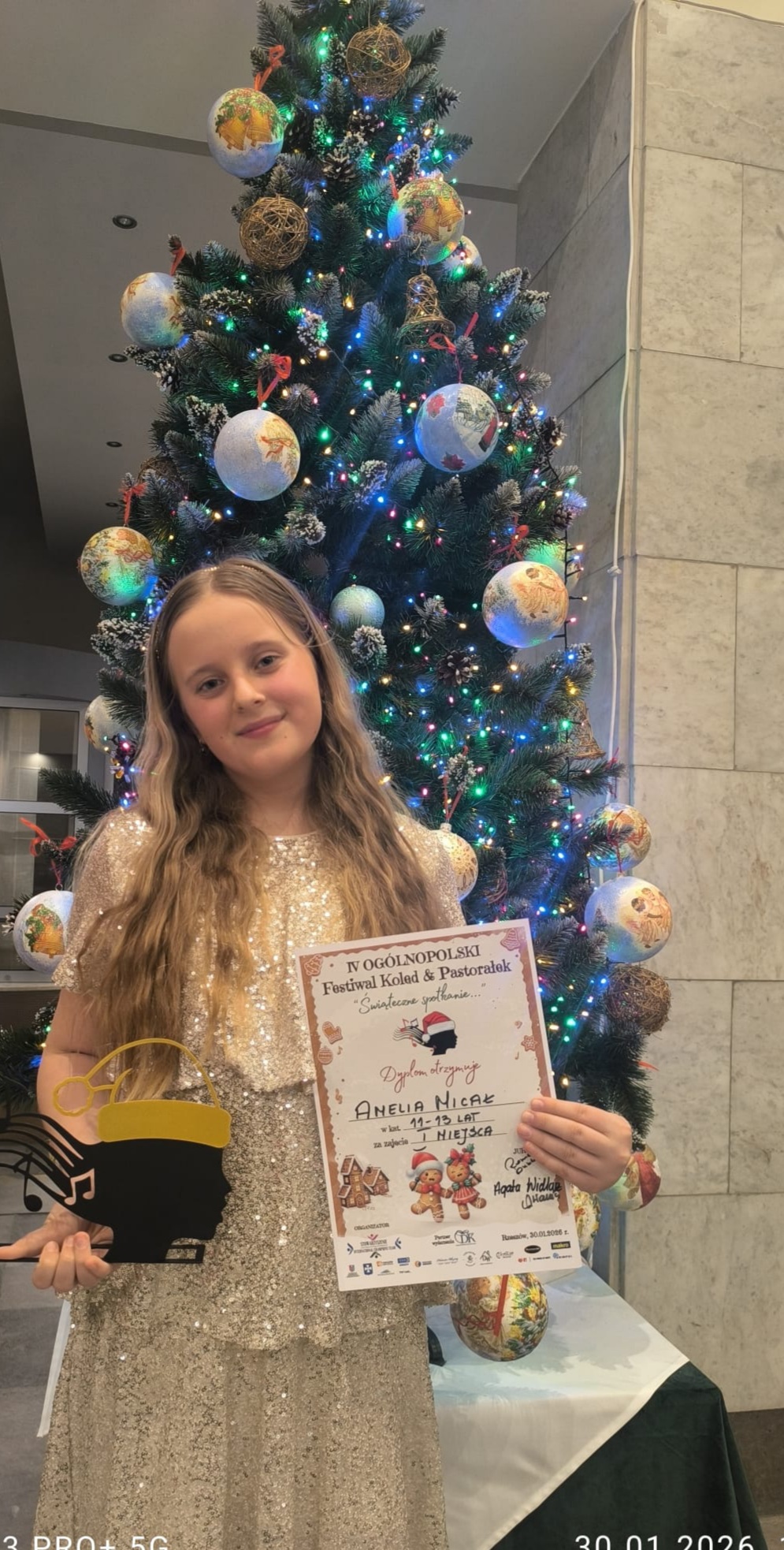 Edyta Śliwa 3 lutego, 2026 Uncategorized Sukces Amelii Micał i Weroniki Fitał 30 stycznia 2026 roku w Wojewódzkim Domu Kultury w Rzeszowie odbył się IV Ogólnopolski Festiwal Kolęd i Pastorałek – “Świąteczne Spotkanie”.Nasze najmłodsze wokalistki z Pracowni wokalnej Anny Olszewskiej zaprezentowały się znakomicie.Z ogromną dumą i radością informujemy, że Jury Festiwalu postanowiło przyznać:I miejsce dla Amelii Micał (kategoria wiekowa II)III miejsce dla Weroniki Fitał (kategoria wiekowa I)Serdecznie gratulujemy wspaniałych występów, pięknych interpretacji i kolejnych scenicznych osiągnięć! Brawo!