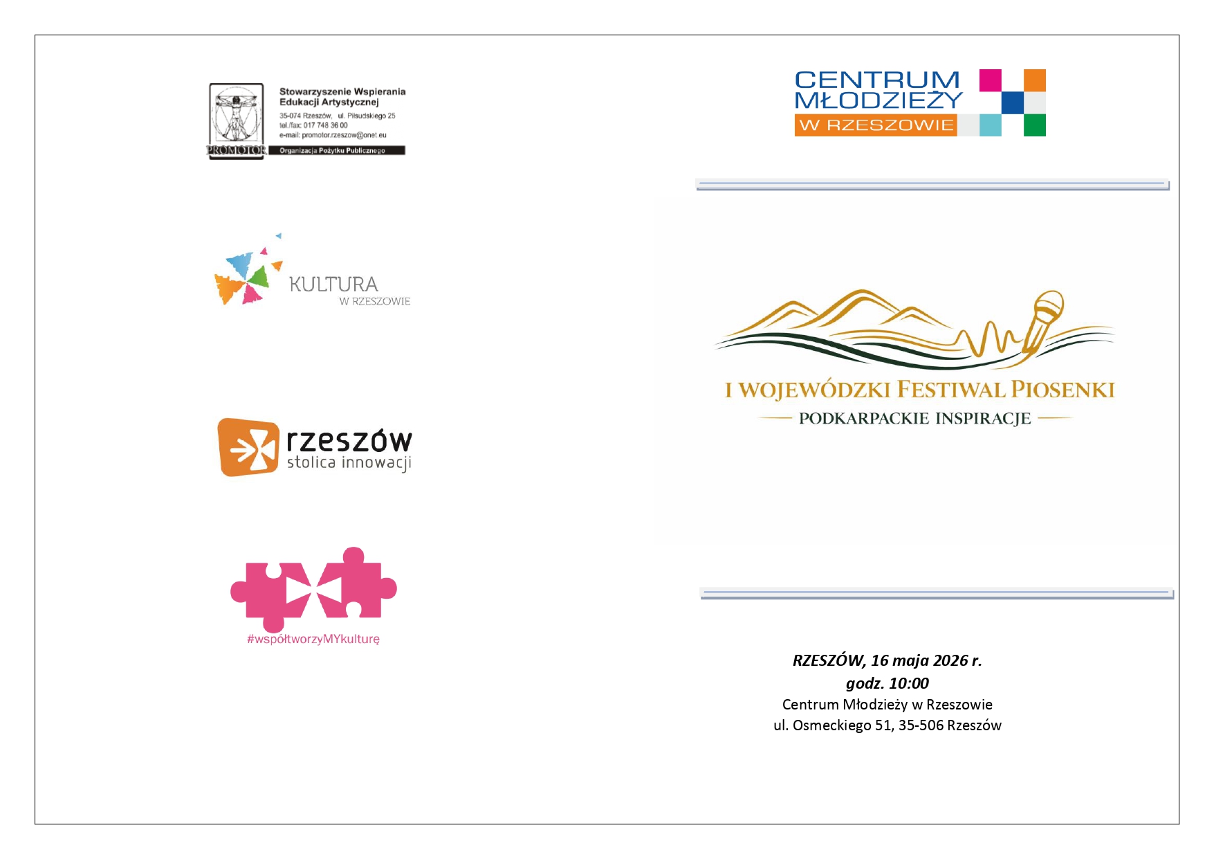 Lista wokalistów zakwalifikowanych do prezentacji zostanie zamieszczona na stronie internetowej CMR, http://mdk.rzeszow.pl/ w dniu 23 kwietnia 2026 r.