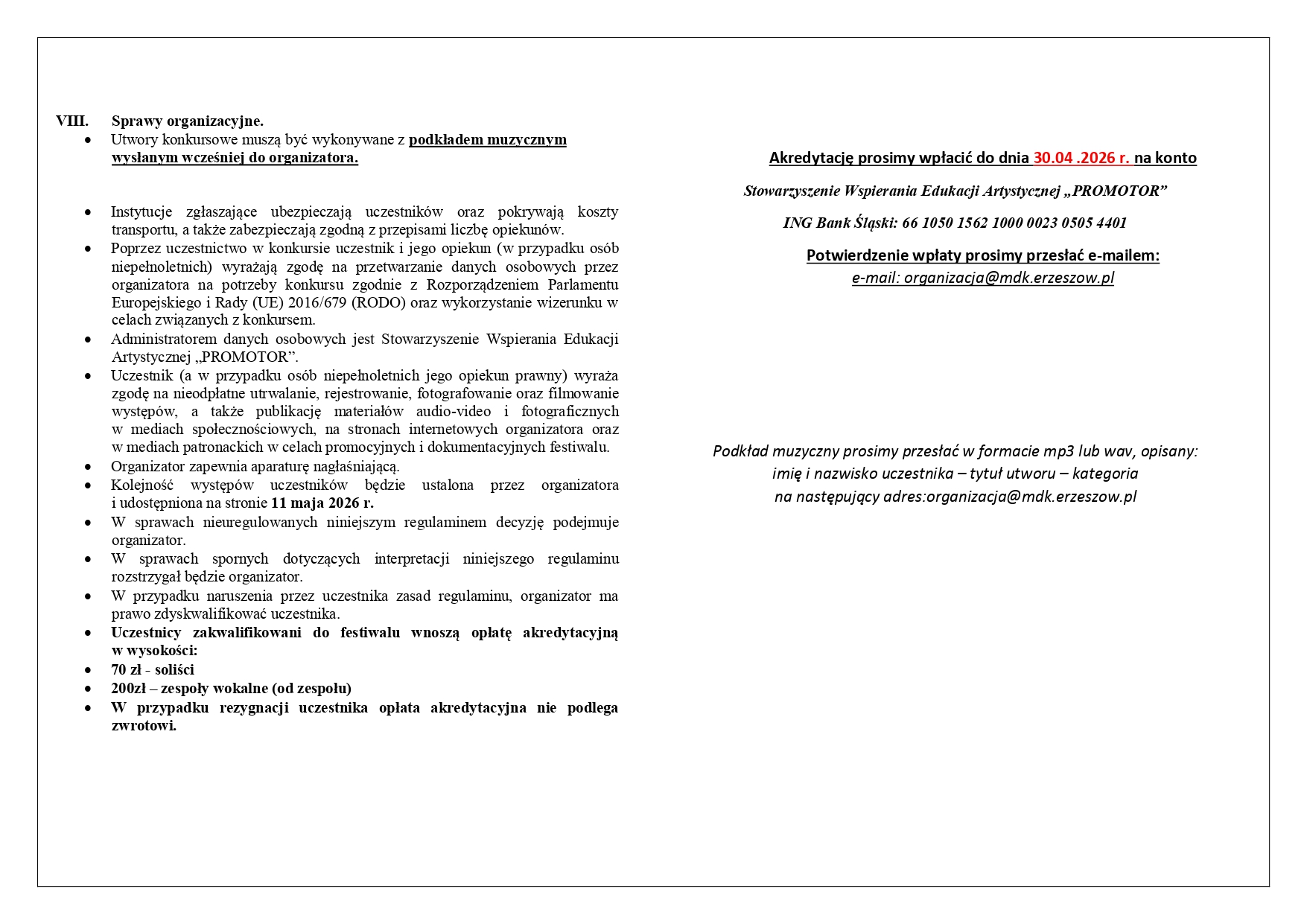Akredytację prosimy wpłacić do dnia 30.04 .2026 r. na konto