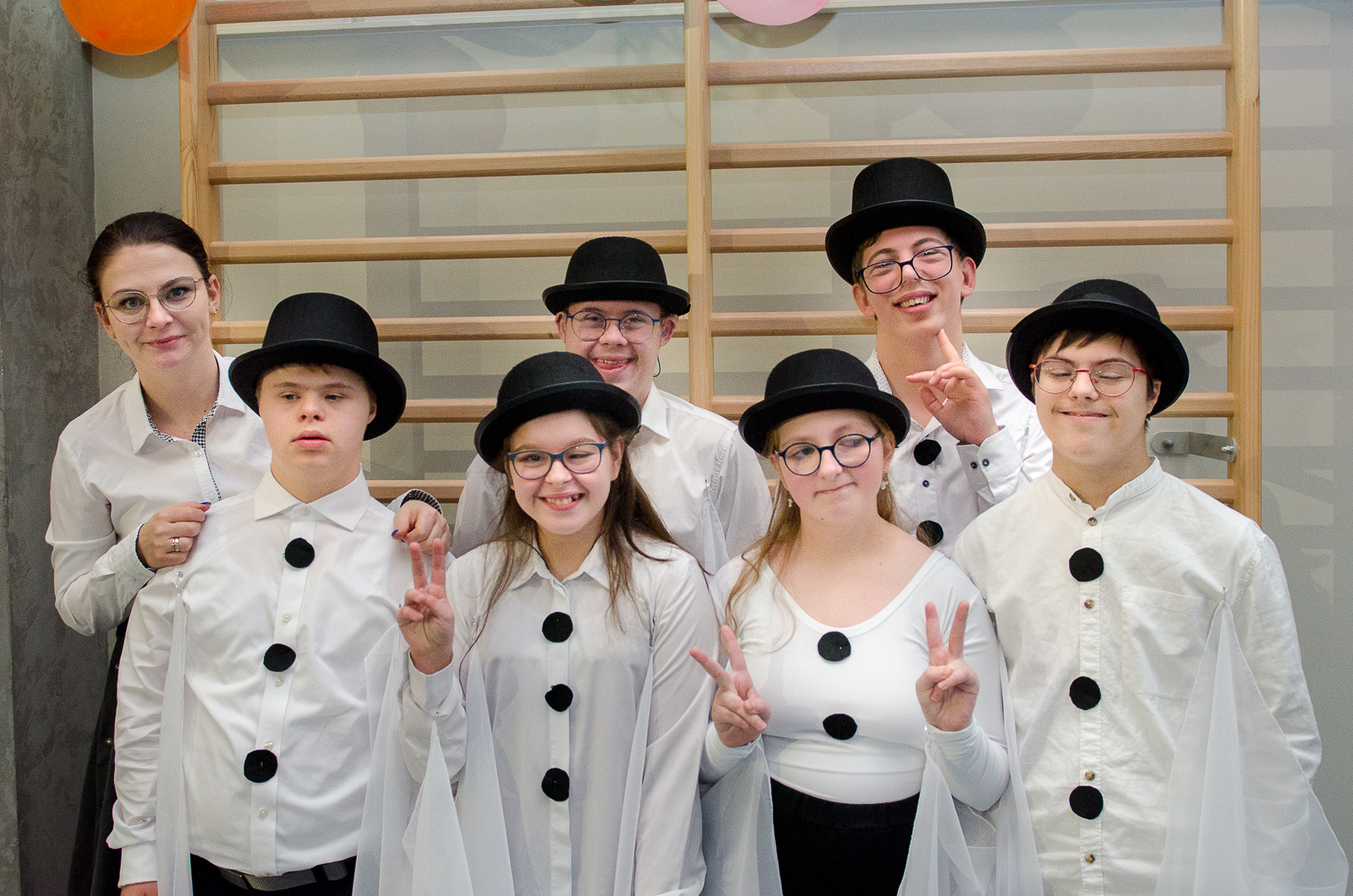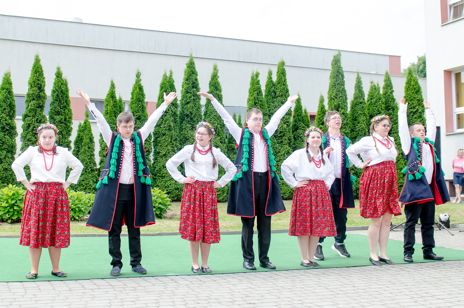 W zespole tańczą uczniowie szkoły podstawowej i szkoły przysposabiającej do pracy.